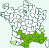Répartition française : Montagnes et collines du midi de la France.