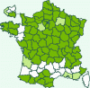 Répartition française : Surtout moitié nord et montagnes.