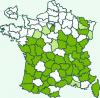 Répartition française : Surtout dans les montagnes. Quelques populations dispersées en plaine.