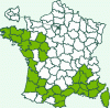 Répartition française : Cévennes, Provence, Corse et littoral atlantique.