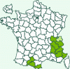 Répartition française : Alpes, Jura et Pyrénées.