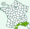 Répartition française : France méditerranéenne. Absent de Corse.