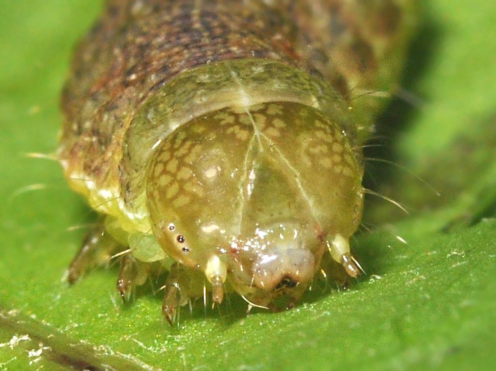 Chenille à l'avant-dernier stade issue d'élevage, Thônes (Haute-Savoie), 825 m, août 2013. Photo Philippe Mothiron.