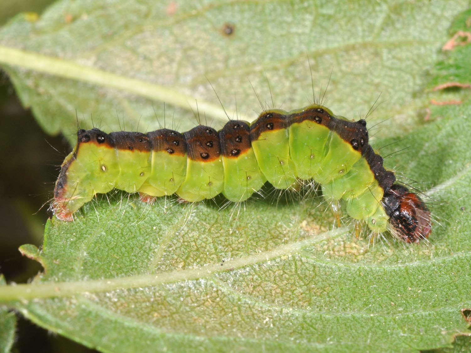 Chenille à l'avant-dernier stade obtenue d'élevage, Bonnevaux (Doubs), juillet 2014. Photo Philippe Mothiron.