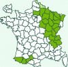 Répartition française : Quart nord-est. Découvert récemment dans les Pyrénées.
