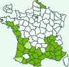 Répartition française : Midi de la France et côte atlantique jusqu'au Morbihan.