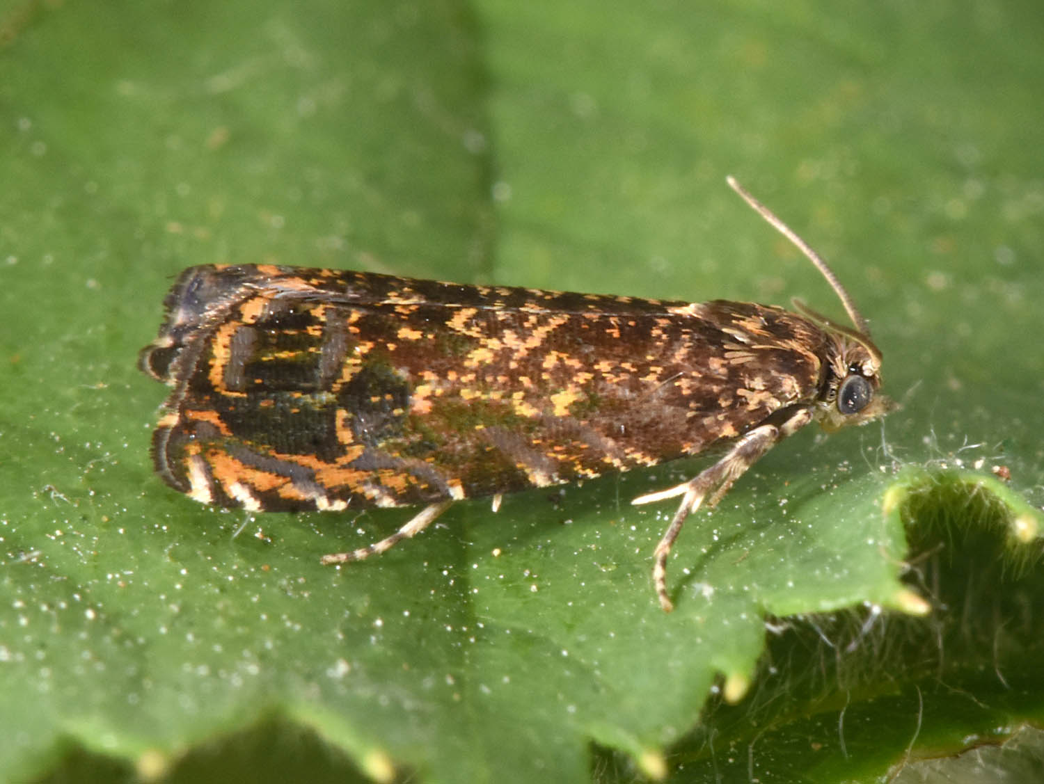 Commentaires : Magnifique espèce, considérée comme nuisible aux arbres fruitiers, dont les chenilles vivent dans les écorces. Une phéromone synthétique permet d'attirer les mâles. Confusion possible (surtout pour les exemplaires défraîchis), avec Grapholita janthinana et G. lobarsewski, qui vivent dans les mêmes milieux.