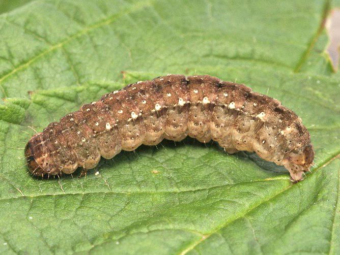 Xestia rhaetica Stgr adulte - ©Helmut Deutsch  Chenille de Xestia rhaetica Stgr - ©Helmut Deutsch
