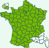 Répartition française : Presque toute la France, semble absente du climat méditerranéen.