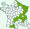 Répartition française : Vosges, Jura, Massif Central, Pyrénées.