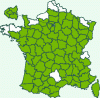 Répartition française : Presque partout, manque par endroits dans le nord et l'ouest.