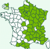 Répartition française : Moitié est et Pyrénées.