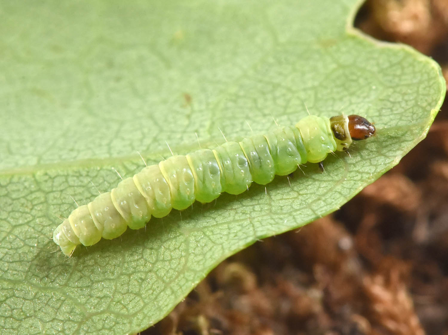 Chenille à terme trouvée sur Chêne, Verneuil-sur-Seine (Yvelines), 5 mai 2025. Photo Philippe Mothiron.