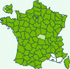 Répartition française : Presque toute la France, absente dans une partie du sud.