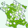 Répartition française : Surtout Midi de la France. A disparu d'une grande partie de la moitié nord vers les années 1980.
